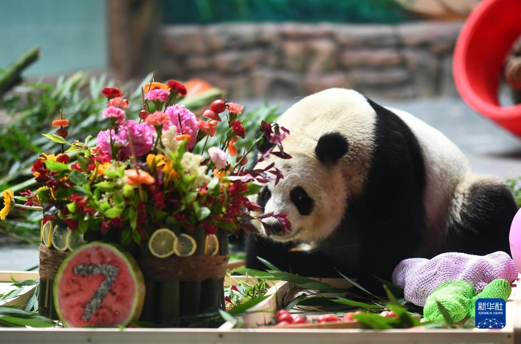 7月1日,一只大熊貓在西寧熊貓館活動(dòng)。