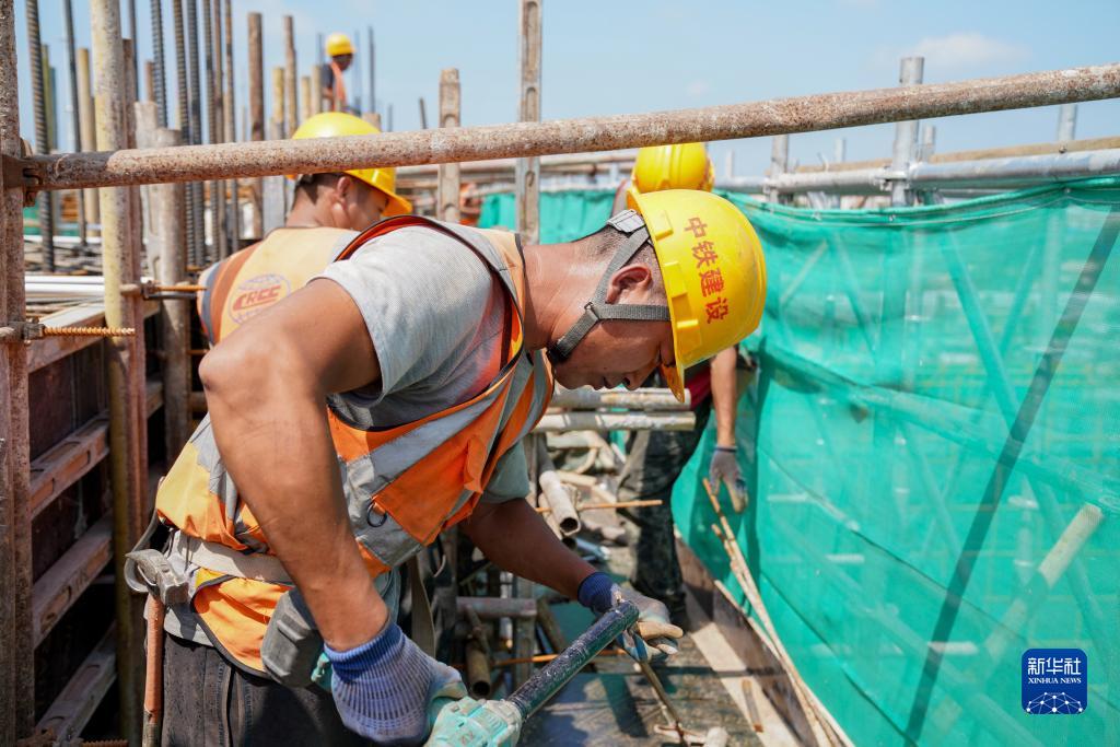6月30日,工人在鐵力站建設施工現場(chǎng)作業(yè)。