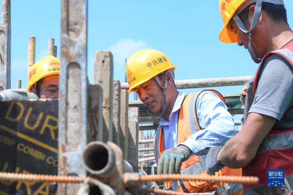 6月30日,工人在鐵力站建設施工現場(chǎng)作業(yè)。