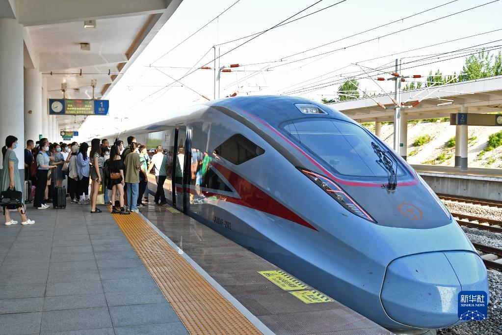 7月1日,旅客在山東煙臺南站乘車(chē)出行。