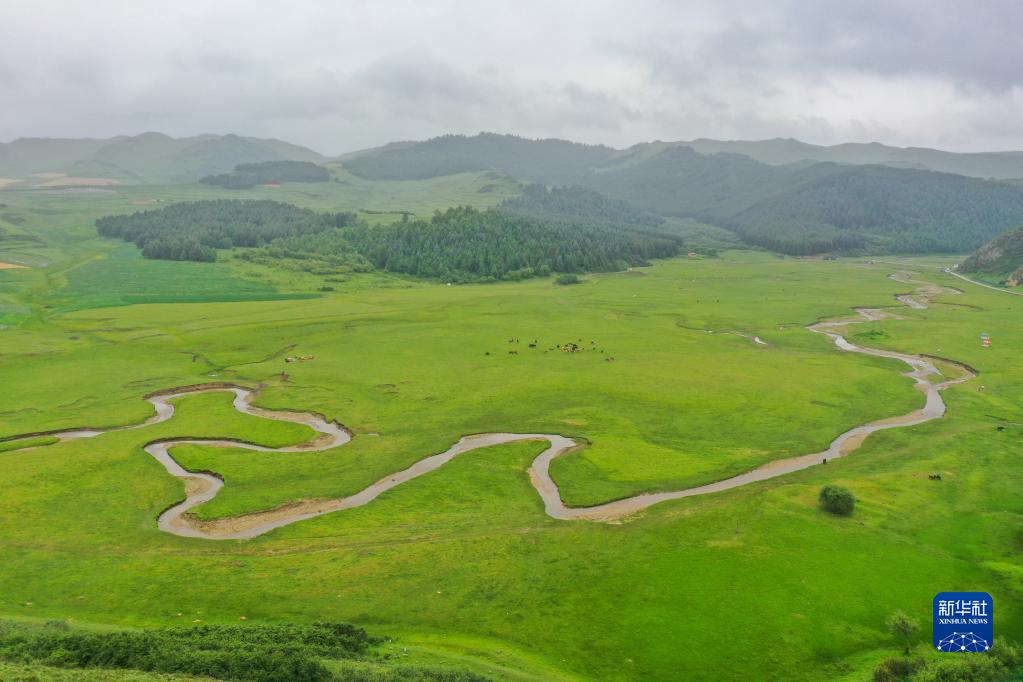當下,甘肅省定西市岷縣狼渡灘草原水草豐茂,曲折蜿蜒的河流靜靜流淌,岸邊牛羊漫步,原野駿馬馳騁,構成一幅壯美的畫(huà)卷。