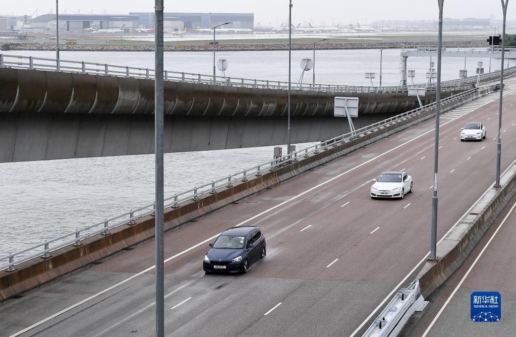 7月1日,香港本地單牌車(chē)行駛在港珠澳大橋香港段。