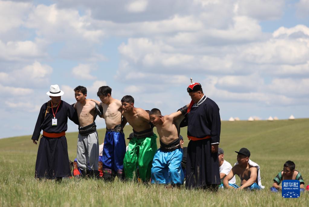 7月1日,參加搏克比賽的小選手們準備上場(chǎng)。