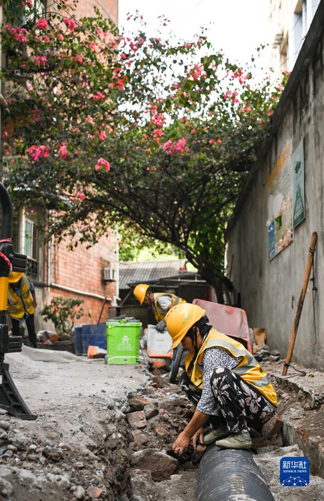 6月30日,中建安裝華西公司的工人在四川省樂(lè )山市市中區海棠街道一處老舊小區改造工地施工。