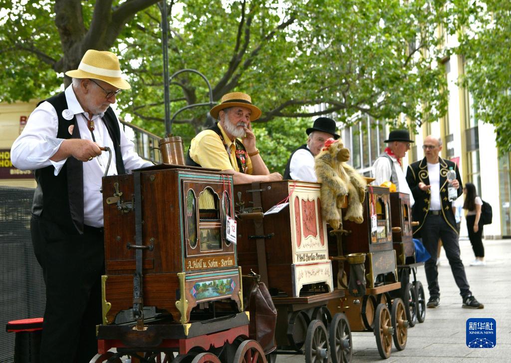 7月1日,手搖風(fēng)琴表演者在德國柏林參加國際手搖風(fēng)琴藝術(shù)節。新華社記者 任鵬飛 攝