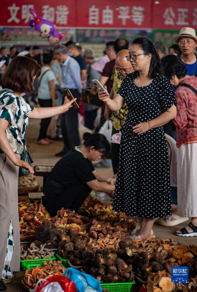 7月2日,市民在位于昆明市的一處野生菌交易市場(chǎng)購買(mǎi)野生菌。