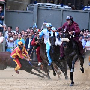 7月2日,騎手在意大利錫耶納參加傳統賽馬節。