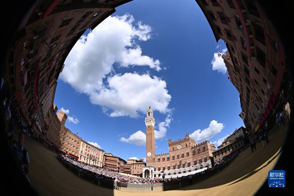 當日,錫耶納賽馬節在意大利托斯卡納大區古城錫耶納市中心的田野廣場(chǎng)舉行,吸引了眾多觀(guān)眾前來(lái)觀(guān)看。錫耶納賽馬節是世界聞名的意大利傳統民間活動(dòng),始于1656年,每年7月2日和8月16日舉行兩次。