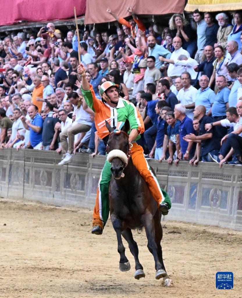 當日,錫耶納賽馬節在意大利托斯卡納大區古城錫耶納市中心的田野廣場(chǎng)舉行,吸引了眾多觀(guān)眾前來(lái)觀(guān)看。錫耶納賽馬節是世界聞名的意大利傳統民間活動(dòng),始于1656年,每年7月2日和8月16日舉行兩次。