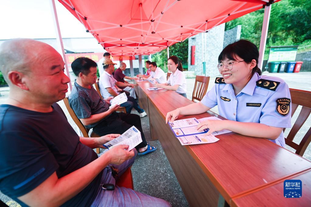 7月3日,諸暨市店口鎮便民服務(wù)中心在上畈村開(kāi)展政務(wù)服務(wù)進(jìn)村入社“流動(dòng)服務(wù)”活動(dòng),市場(chǎng)監管局工作人員(右一)在進(jìn)行個(gè)體工商戶(hù)年報申報問(wèn)題的解答。