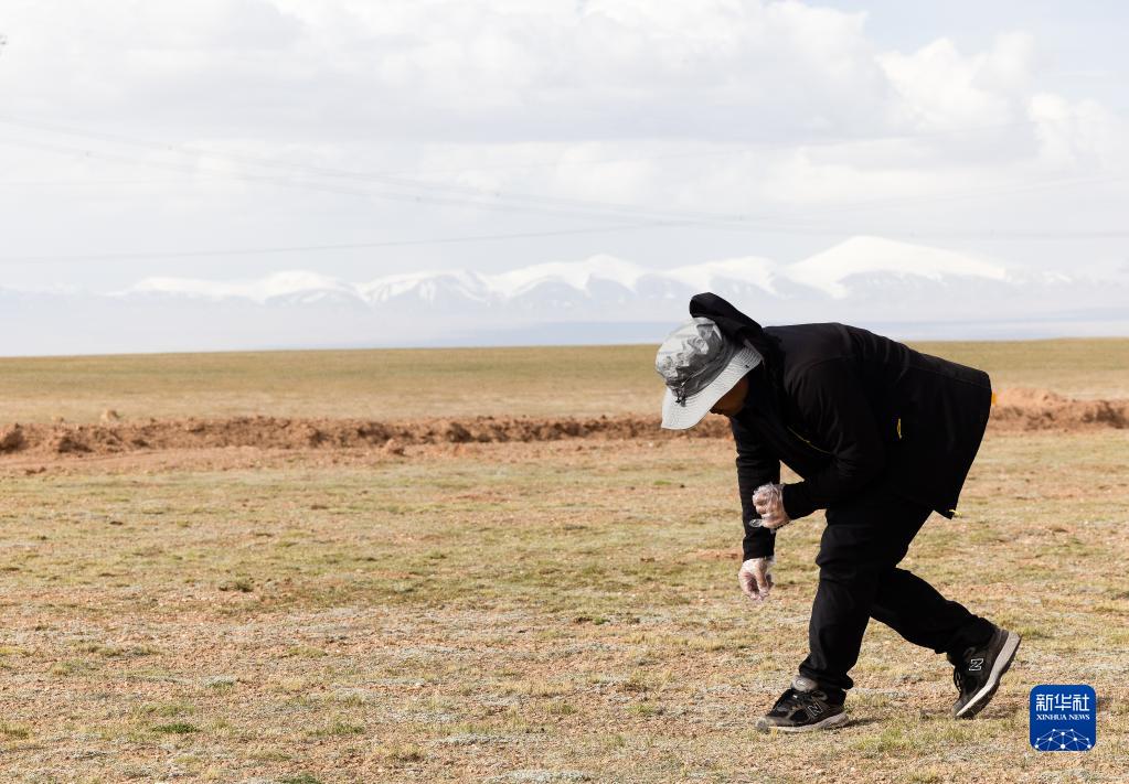 6月15日,中國科學(xué)院西北高原生物研究所研究員連新明在可可西里采集藏羚羊新鮮糞便樣本。