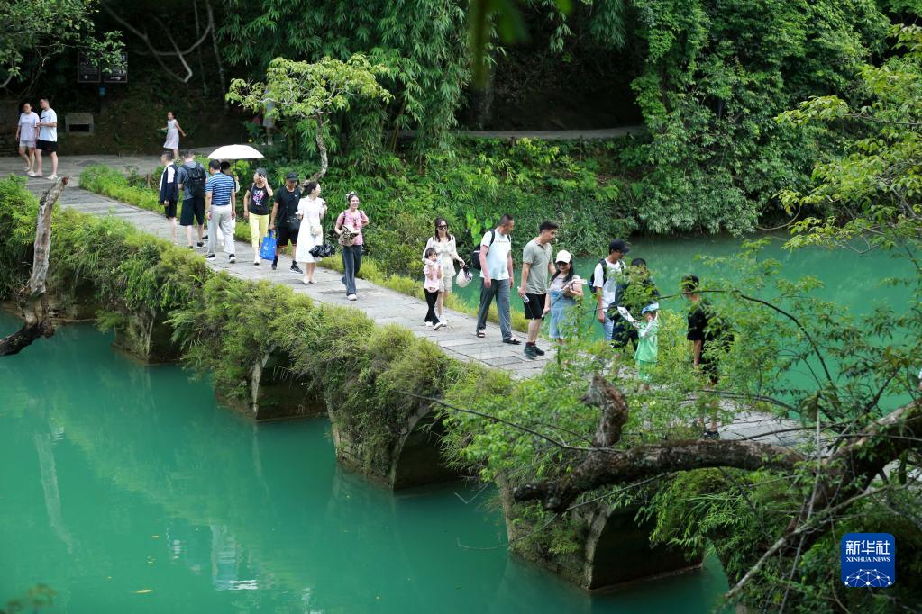 進(jìn)入夏季,眾多游客來(lái)到貴州省黔南布依族苗族自治州荔波縣,暢游青山綠水,感受世界自然遺產(chǎn)地之美,樂(lè )享夏日時(shí)光。