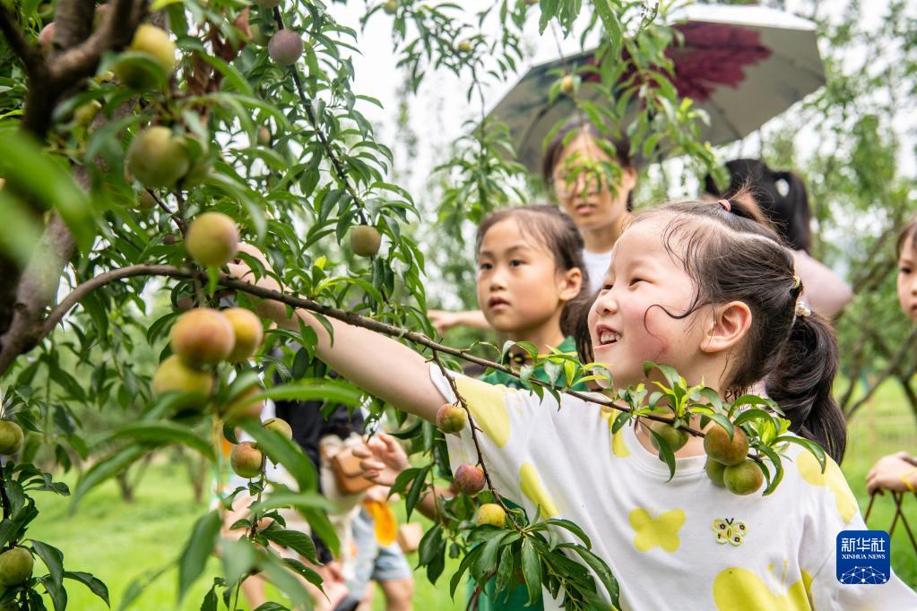 7月3日,孩子們在廣陽(yáng)島的“生態(tài)研學(xué)課程”上采摘李子。