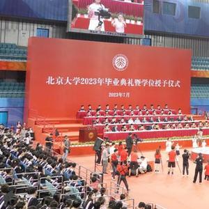 當日,北京大學(xué)2023年本科生畢業(yè)典禮暨學(xué)位授予儀式在北京大學(xué)邱德拔體育館舉行。