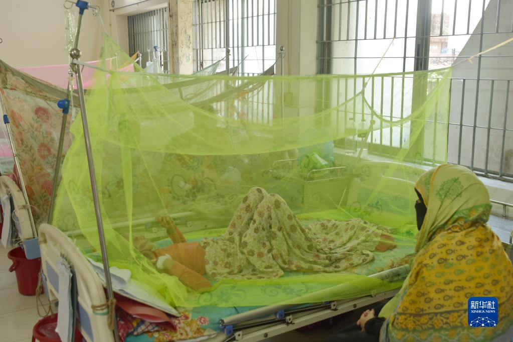 7月4日,在孟加拉國達卡一處醫院,登革熱患者在蚊帳里接受治療。