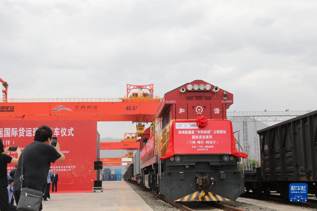 7月5日上午,陸海新通道“中阿快線(xiàn)”公鐵聯(lián)運國際貨運班列從蘭州東川站鳴笛出發(fā)。