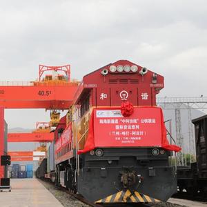 當日,蘭州西部陸海新通道“中阿快線(xiàn)”(蘭州至阿富汗海拉頓)公鐵聯(lián)運國際貨運班列從甘肅(蘭州)國際陸港開(kāi)行。