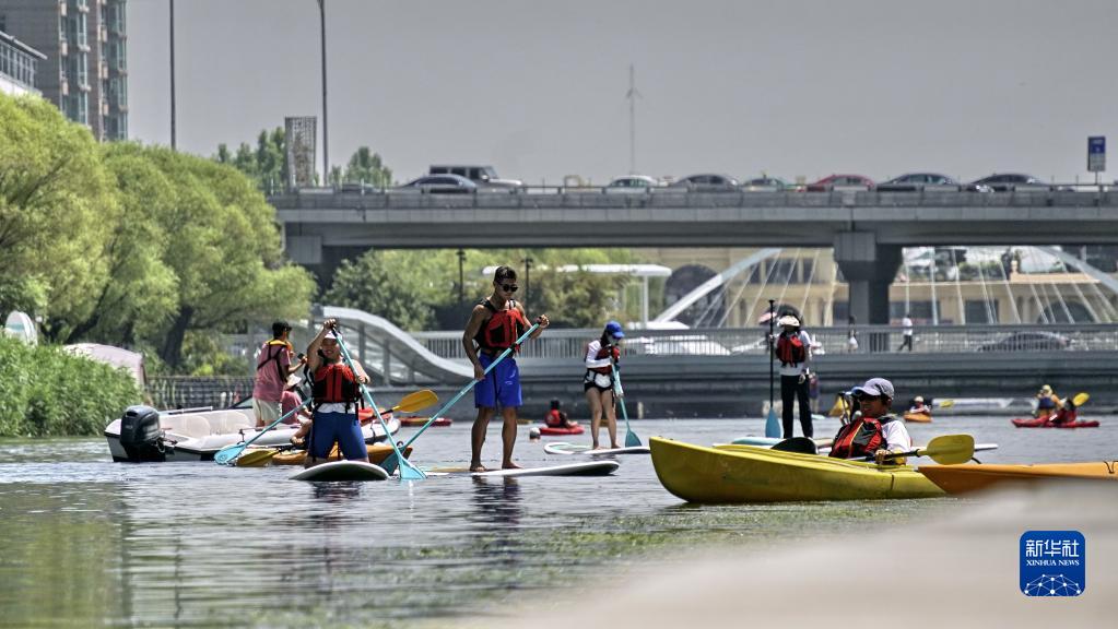 7月5日,市民在亮馬河上參加水上運動(dòng)。