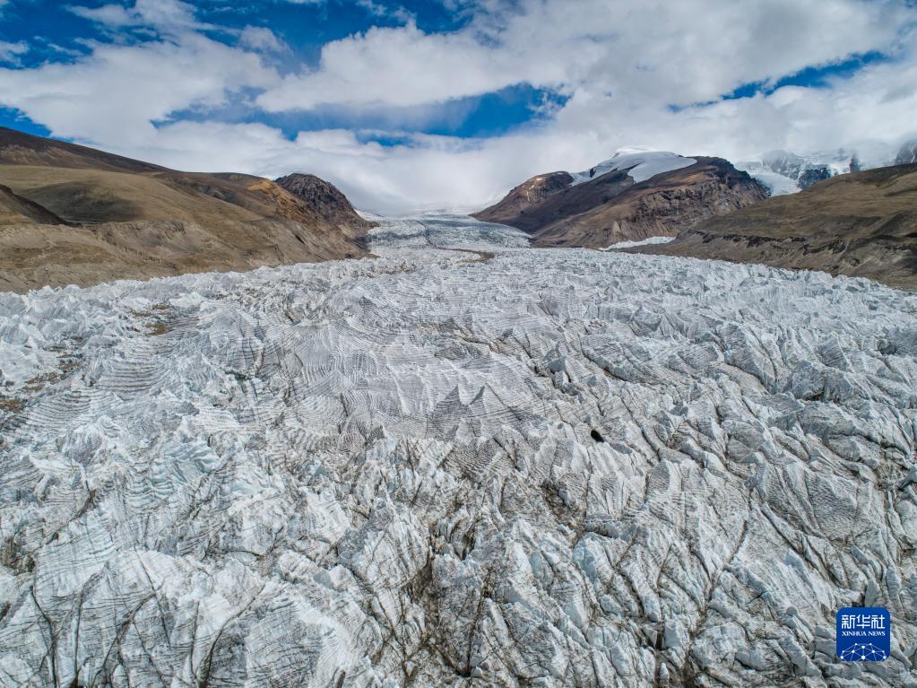 崗布冰川一景(7月4日攝,無(wú)人機照片)。