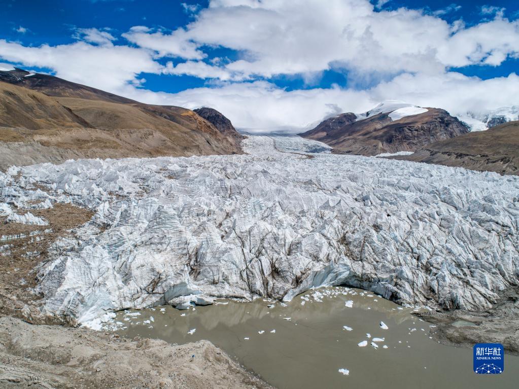 崗布冰川一景(7月4日攝,無(wú)人機照片)。
