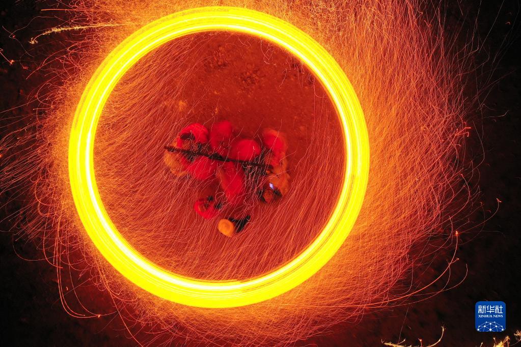“掄花”是河北省灤平縣一項傳統民俗,已被列入國家級非物質(zhì)文化遺產(chǎn)名錄。表演時(shí),幾名民間藝人將木炭和碎鐵片一起放到掛在花架上的花筒中燃燒,再合力掄起花架,使花筒內升溫并向四周甩濺鐵花,形成一圈圈光線(xiàn)交織的光環(huán),景象壯觀(guān)。