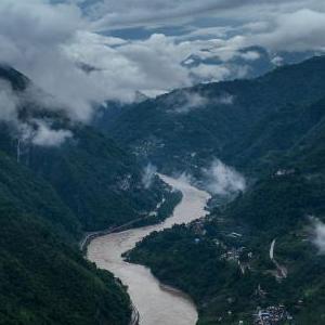 “國道之行 從雪山奔向大?!眻蟮澜M沿著(zhù)219國道來(lái)到云南怒江州貢山縣。傍晚時(shí)分,一層薄霧飄蕩在怒江的江面上,仿佛一條白色的薄紗。