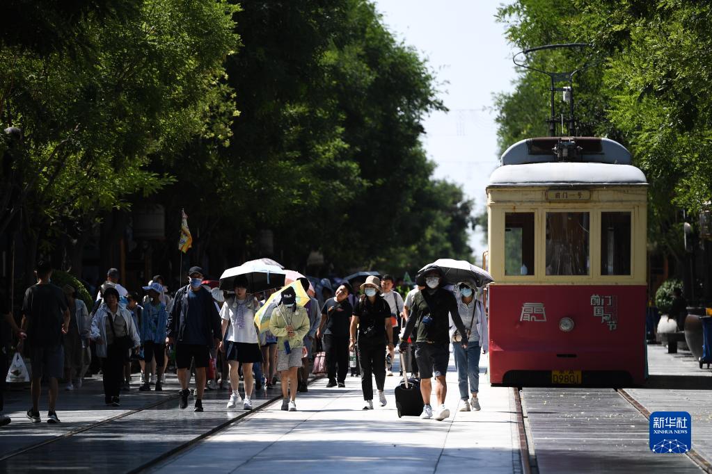 7月6日,游客走在北京市前門(mén)大街上。