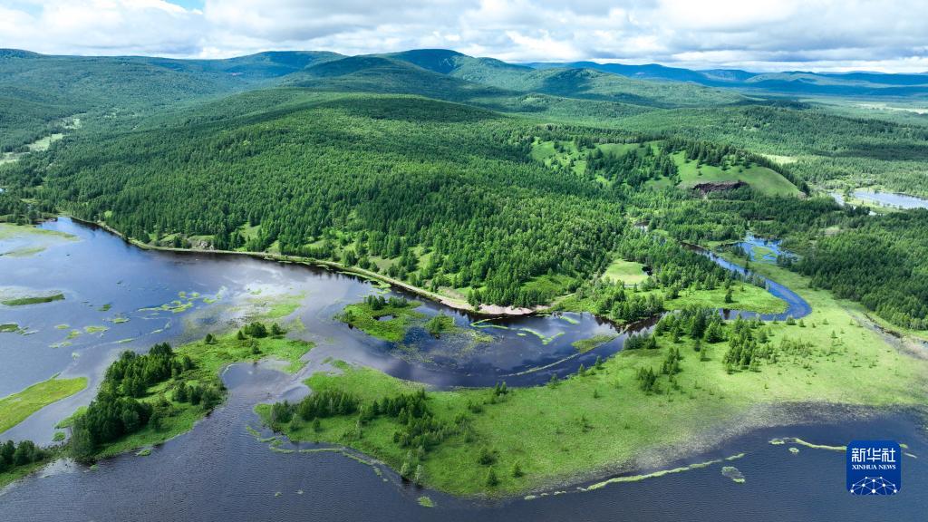7月6日拍攝的阿爾山國家森林公園杜鵑湖風(fēng)光(無(wú)人機照片)。