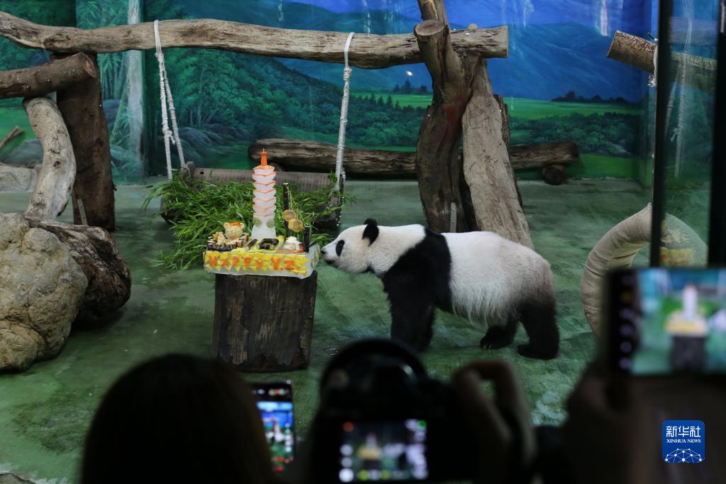 當日,臺北市動(dòng)物園為大陸贈臺大熊貓“團團”和“圓圓”的女兒“圓仔”慶祝10周歲生日。