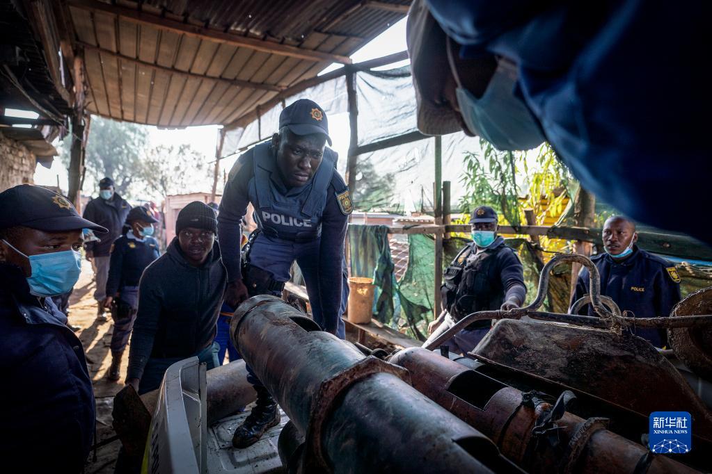 7月6日,警察在南非豪滕省埃庫爾胡萊尼市的事發(fā)現場(chǎng)轉移氣罐。