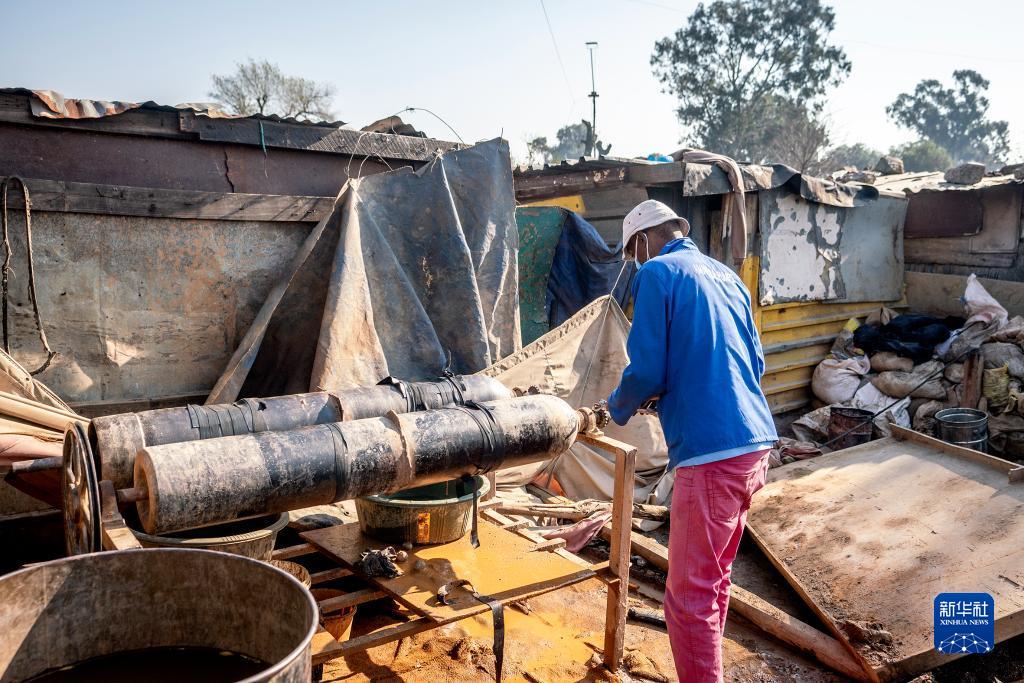 7月6日,一名工作人員在南非豪滕省埃庫爾胡萊尼市的事發(fā)現場(chǎng)檢查。