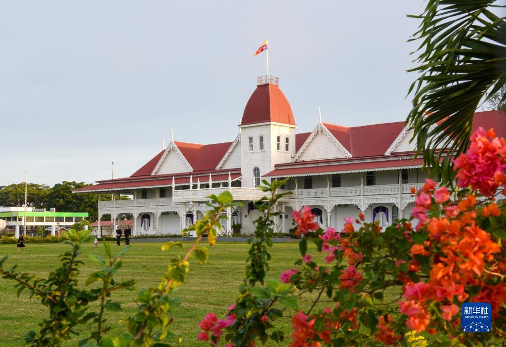 這是7月3日在湯加首都努庫阿洛法拍攝的湯加王宮。
