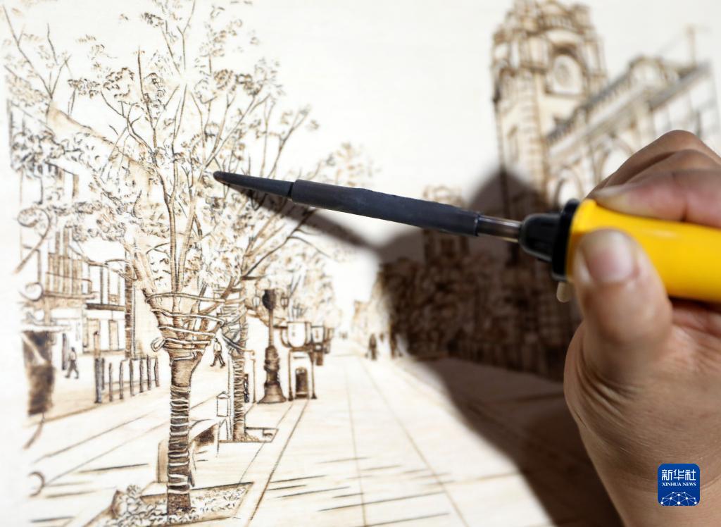 手持電烙筆,在椴木板上利用高溫繪出美麗的畫(huà)作,這種作畫(huà)形式就是有“火針刺繡”之稱(chēng)的烙畫(huà)。李影是遼寧省營(yíng)口市李氏烙畫(huà)藝術(shù)代表性傳承人,她自幼受家庭熏陶學(xué)習烙畫(huà)技藝,在傳承傳統技藝的基礎上,不斷創(chuàng )新作畫(huà)技巧、豐富烙畫(huà)表現形式。李影認為,烙畫(huà)技藝和其他優(yōu)秀的傳統手工藝一樣,需要守護傳承,要讓更多的人來(lái)接觸、了解烙畫(huà)。