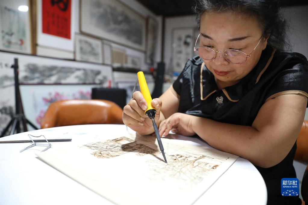 手持電烙筆,在椴木板上利用高溫繪出美麗的畫(huà)作,這種作畫(huà)形式就是有“火針刺繡”之稱(chēng)的烙畫(huà)。李影是遼寧省營(yíng)口市李氏烙畫(huà)藝術(shù)代表性傳承人,她自幼受家庭熏陶學(xué)習烙畫(huà)技藝,在傳承傳統技藝的基礎上,不斷創(chuàng )新作畫(huà)技巧、豐富烙畫(huà)表現形式。李影認為,烙畫(huà)技藝和其他優(yōu)秀的傳統手工藝一樣,需要守護傳承,要讓更多的人來(lái)接觸、了解烙畫(huà)。