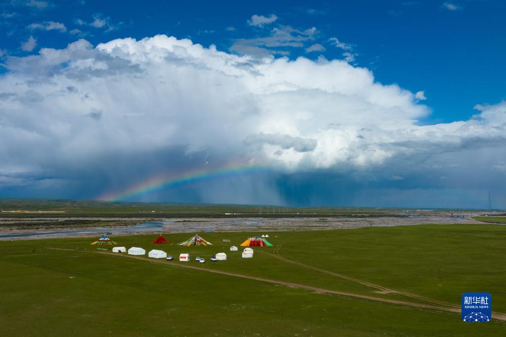 這是7月6日在天峻草原上拍攝的生態(tài)旅游營(yíng)地(無(wú)人機照片)。