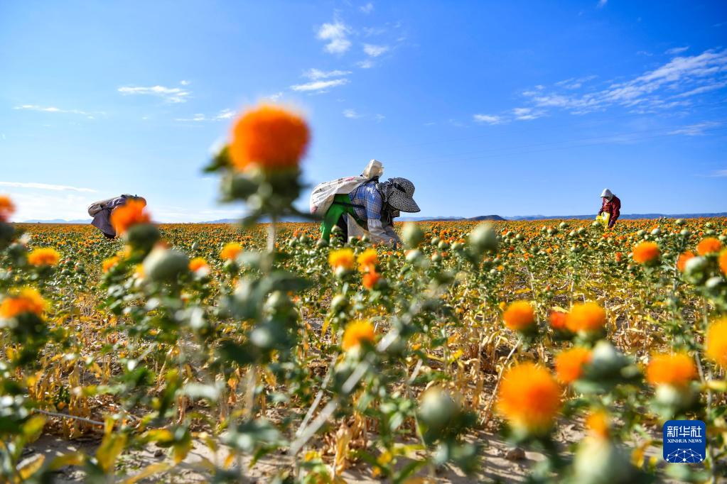 新疆裕民15萬(wàn)多畝紅花迎來(lái)收獲季