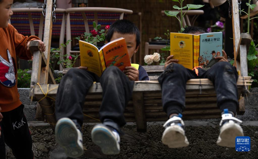 7月5日,小朋友們在“半山花語(yǔ)”書(shū)屋看書(shū)。新華社記者 費茂華 攝