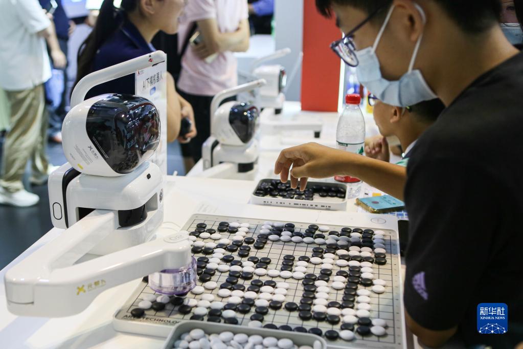 7月7日,元蘿卜AI下棋機器人與觀(guān)眾對弈。