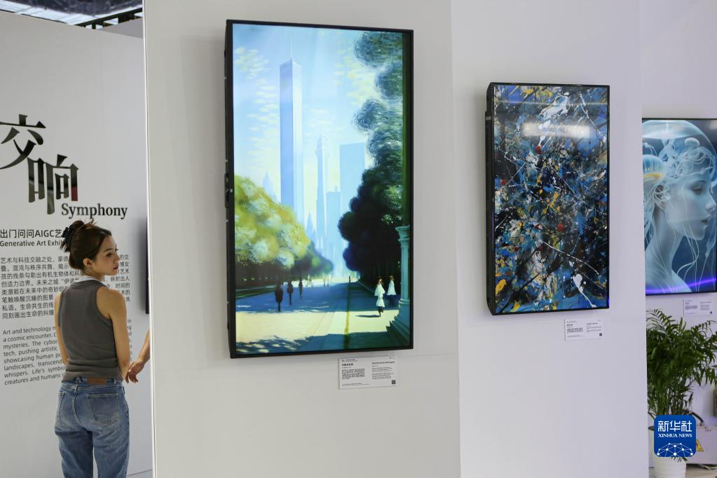 7月7日,觀(guān)眾參觀(guān)主題為“交響”的AIGC藝術(shù)展。