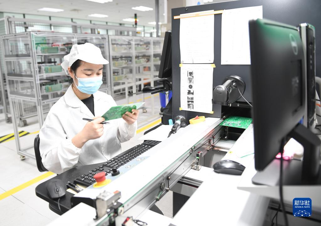 7月7日,在南瑞集團有限公司智能制造生產(chǎn)區,工人檢驗電路板。