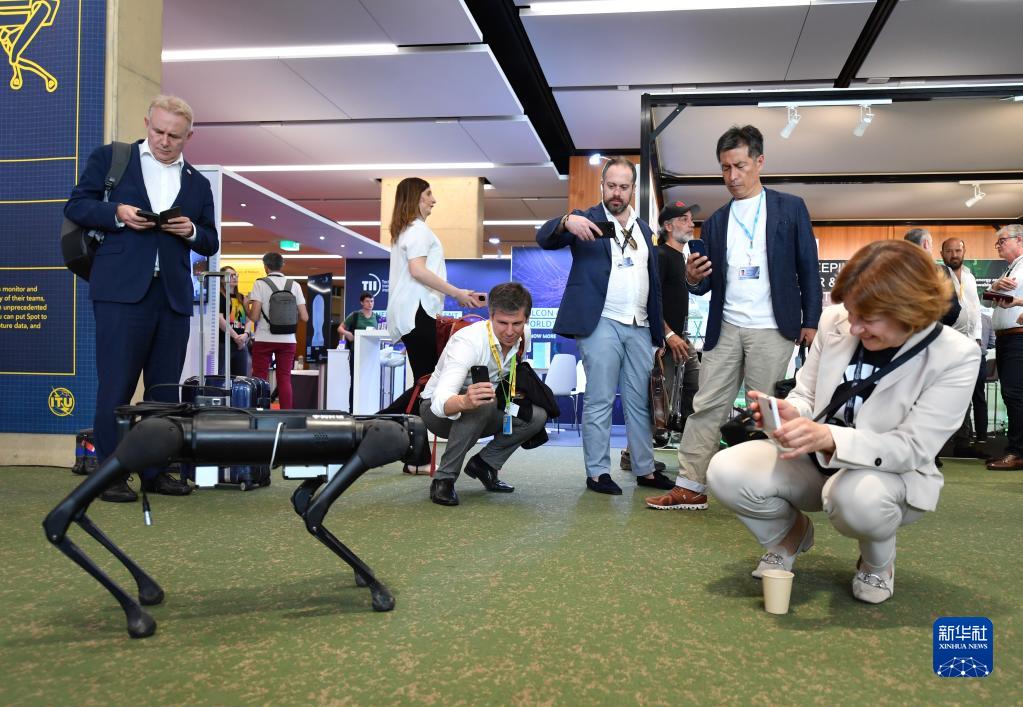 7月7日,在瑞士日內瓦“人工智能造福人類(lèi)全球峰會(huì )”上,參會(huì )者觀(guān)看機器狗。