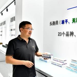 7月7日,在菏澤了未元生物醫藥大健康產(chǎn)業(yè)園展廳,工作人員介紹產(chǎn)業(yè)園醫藥產(chǎn)品生產(chǎn)情況。