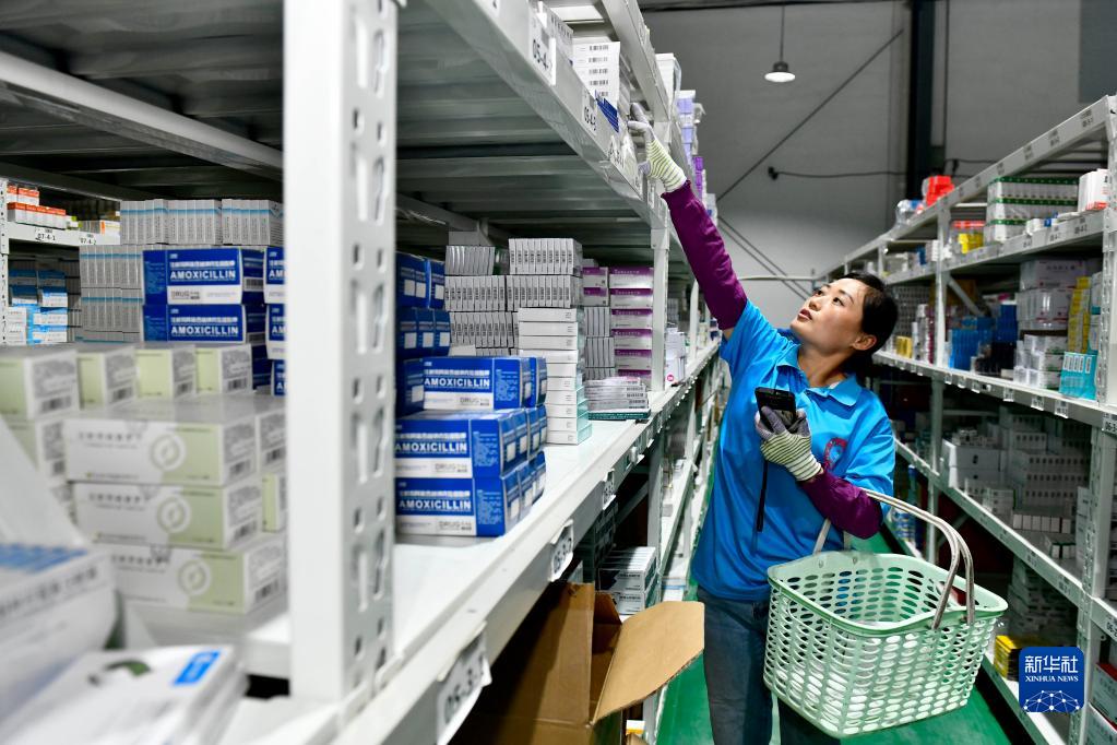 7月7日,在國九堂(山東)醫藥物流有限公司,工作人員按客戶(hù)需求準備藥品。