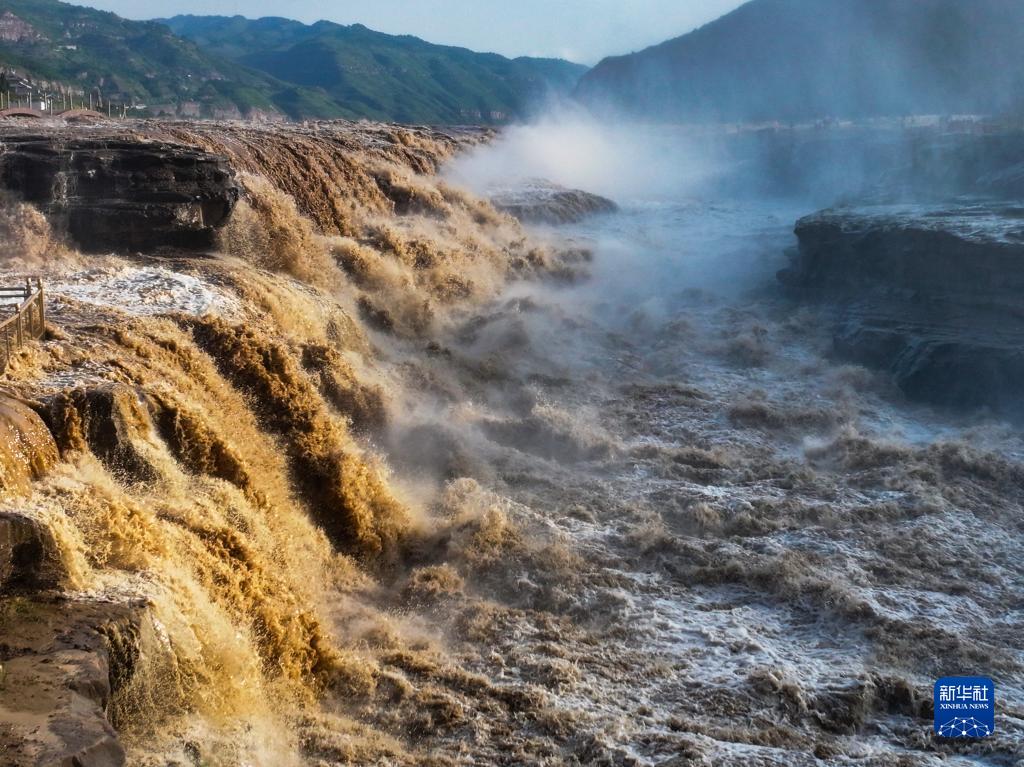近日,黃河壺口瀑布水流量增大,水勢洶涌澎湃,蔚為壯觀(guān)。