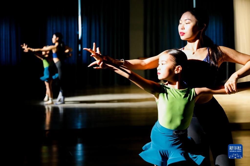 7月8日,在河南省焦作市武陟縣一家培訓機構,舞蹈老師指導學(xué)生練習舞蹈動(dòng)作。