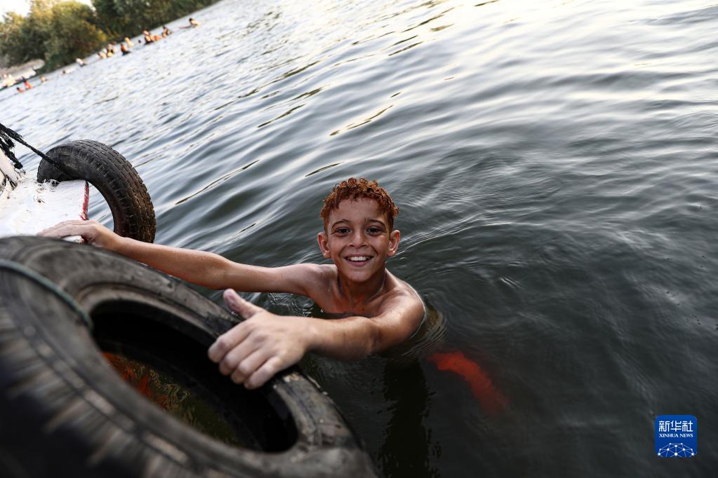 7月8日,在埃及蓋盧比尤省,一名男孩在尼羅河里戲水避暑。