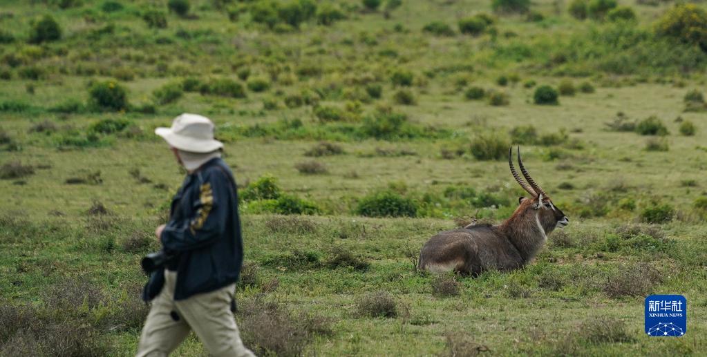 7月8日,一名游客在肯尼亞奈瓦沙湖新月島上游覽。