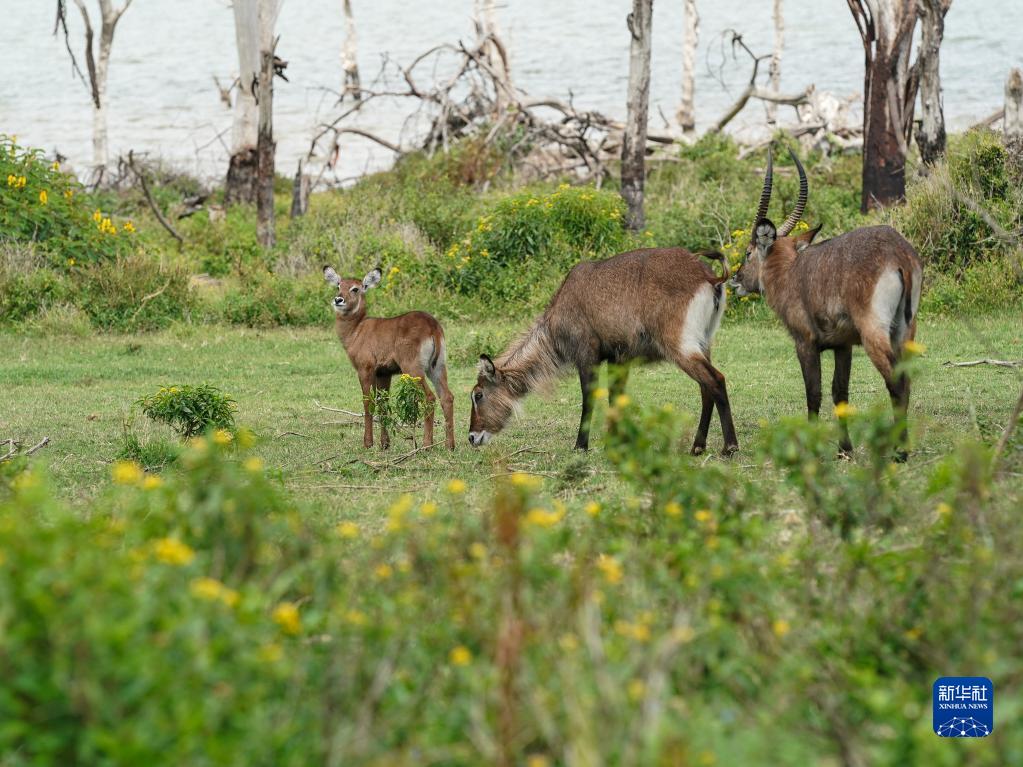 7月8日,水羚在肯尼亞奈瓦沙湖新月島上活動(dòng)。