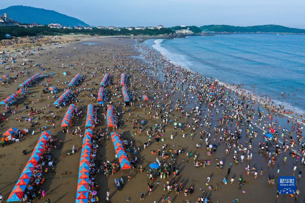 7月8日拍攝的朱家尖南沙景區(無(wú)人機照片)。