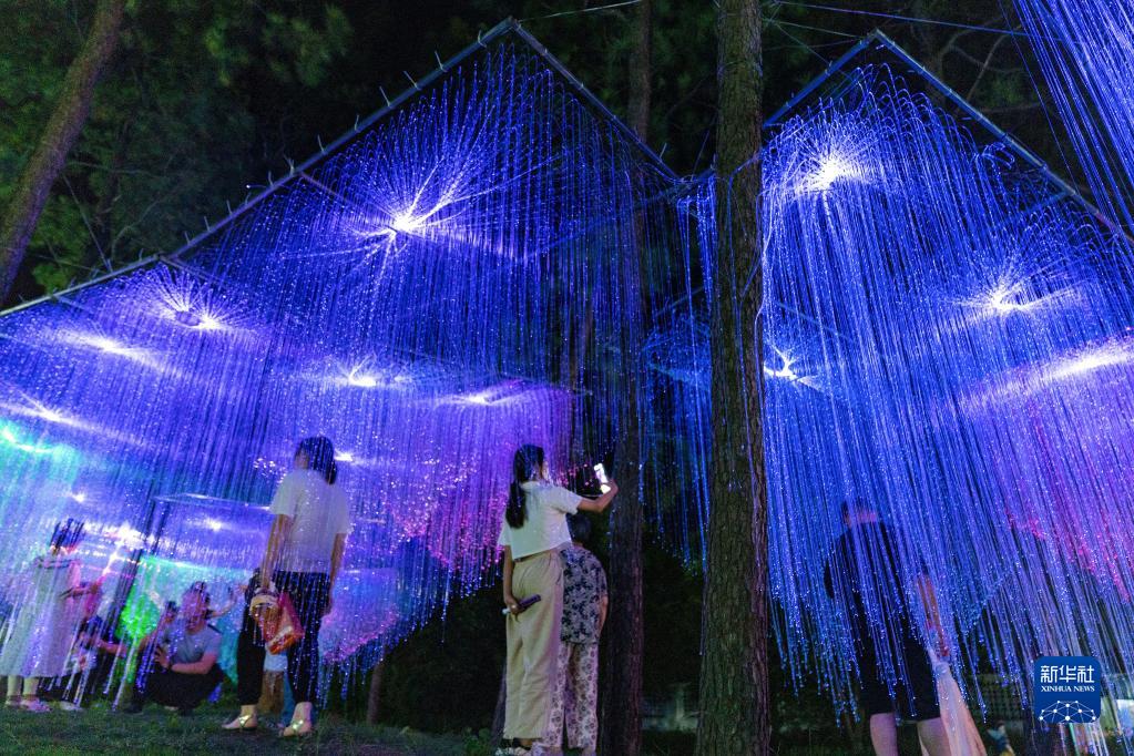 暑期,安徽省合肥市肥東縣橋頭集鎮歡樂(lè )森林景區內游人如織,該景區7月8日起至8月31日策劃炫彩燈展,結合美食節等夜間活動(dòng),點(diǎn)燃了酷暑之下的鄉村游新熱點(diǎn)。